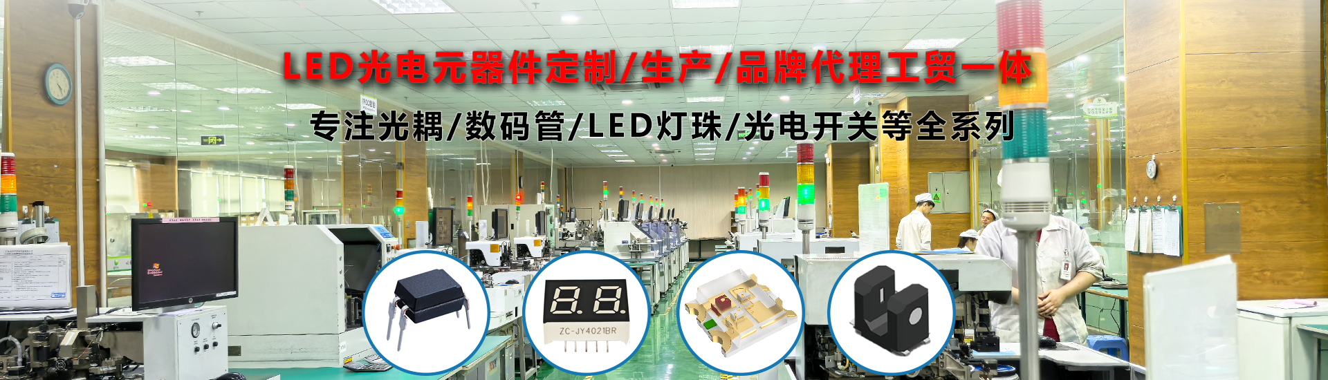 主營LED燈珠、數(shù)碼管、光耦、光電開關、紅外對管等產(chǎn)品